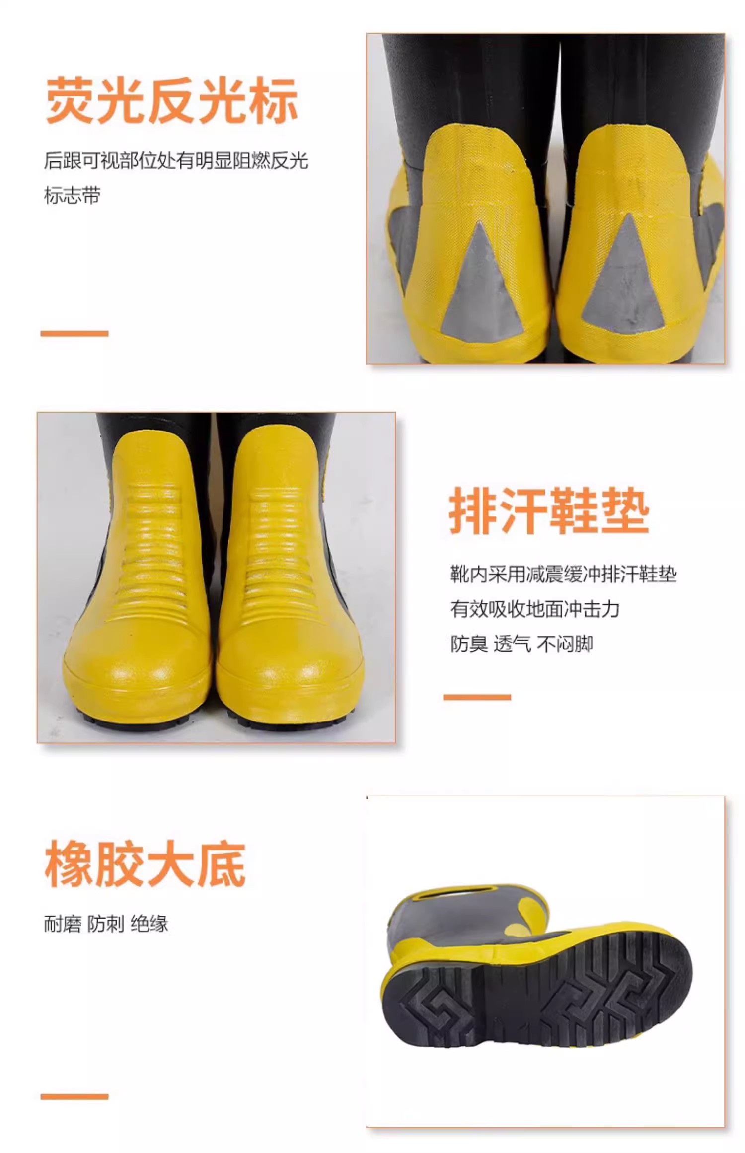 鴻寶滅火防護靴戰斗膠靴防砸防刺輕便防滑廠(chǎng)家直供